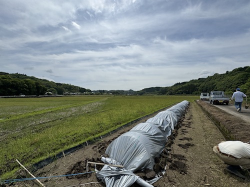 田に並べて小さなビニールハウスで覆うところまでが一連の仕事
