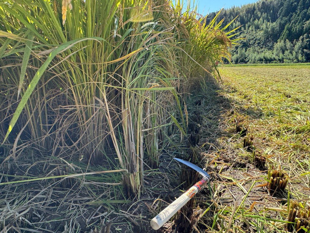 さまざまな障害を乗り越えて稲が育ちました 秋晴れのもと待望の稲刈です